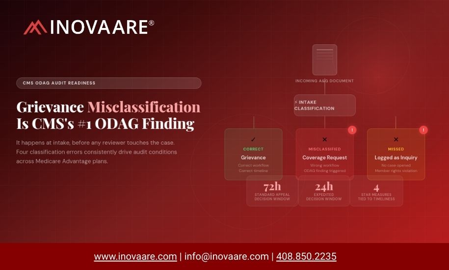 CMS auditors don’t just test timeliness — they test whether your plan correctly identified what it received in the first place. Misclassifying a grievance as a coverage request, or an appeal as an inquiry, is one of the fastest paths to an ODAG finding. And it almost always traces back to your intake process.